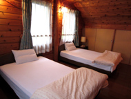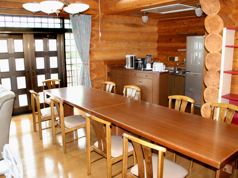 | 木造2階建ての完全貸切制ログハウス。扉を開ければ木の匂いが漂う癒しの空間で、9名(最大13名)様のご宿泊が可能な施設です。広いリビングにお部屋も3部屋。完全貸切制なので気兼ねなく旅の時間を満喫できます。ベランダも付いており、バーベキューなんかもできます。ご家族や会社・学生さんのグループ旅行に最適です。 | ![]() |